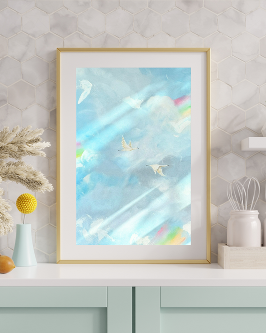 Flying Together Through Storms and Rainbows- Printable Watercolor Art