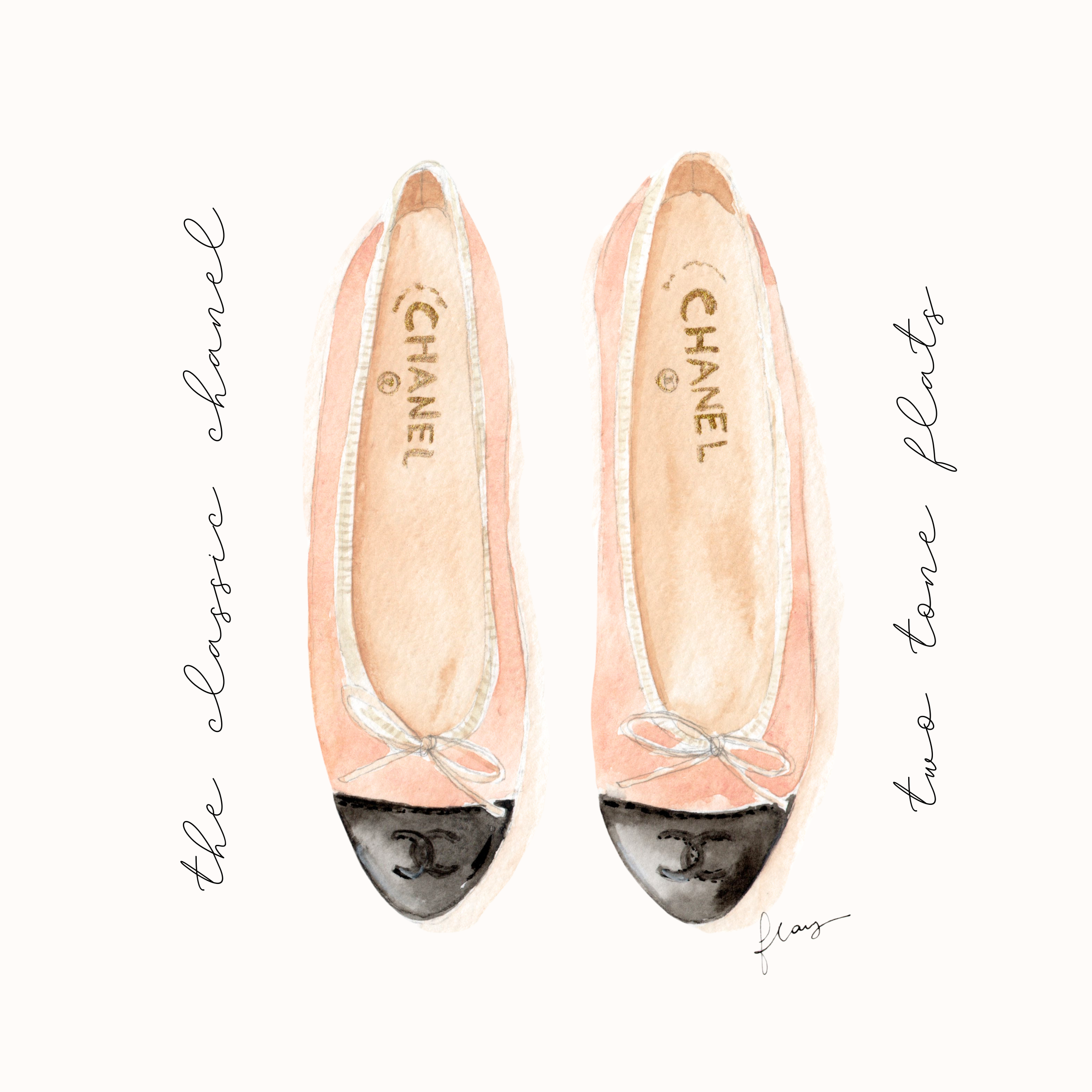 A high-fashion watercolor illustration of a model dressed in iconic Chanel, complete with the signature perfume — a tribute to timeless style and luxury branding.