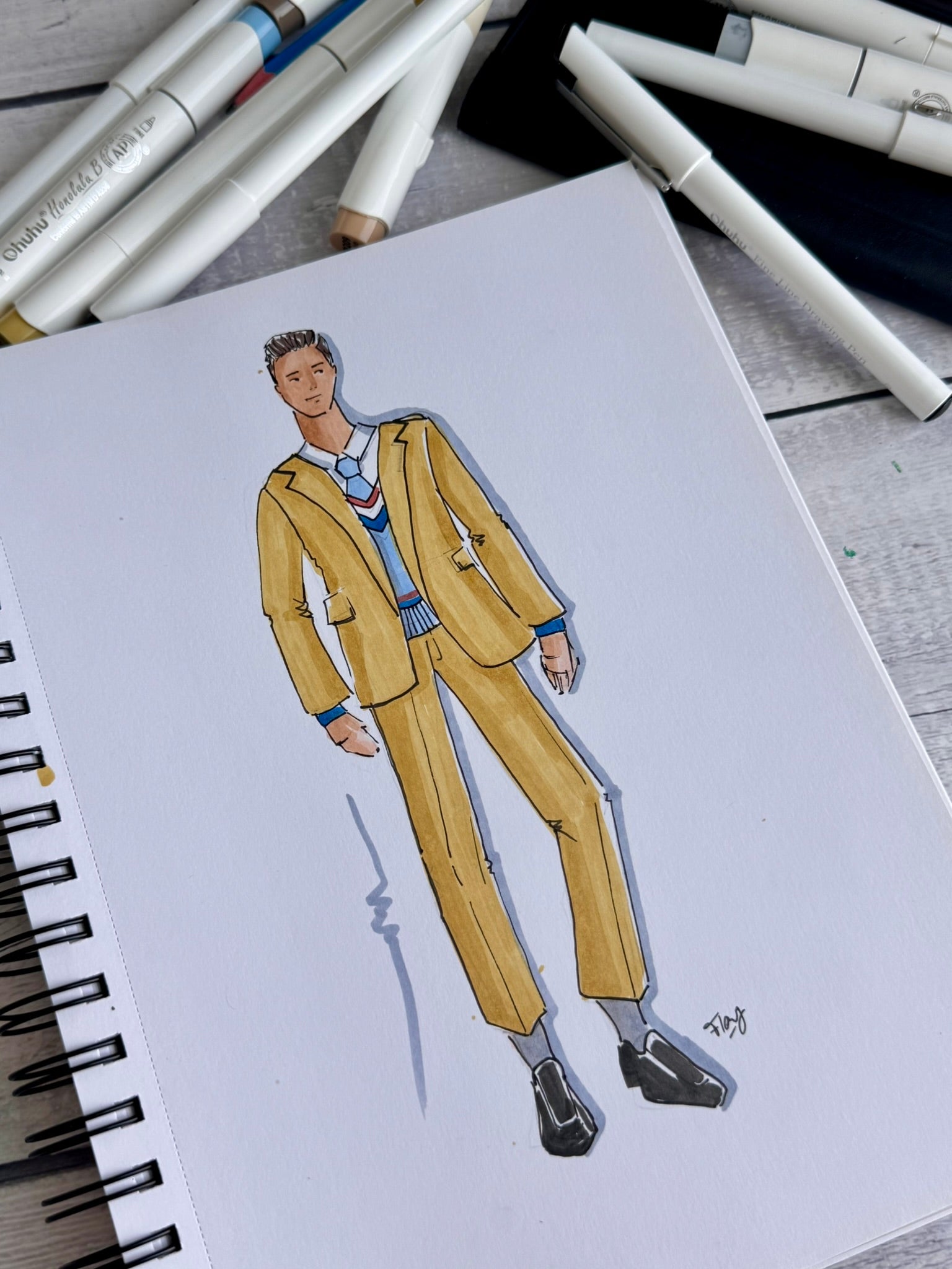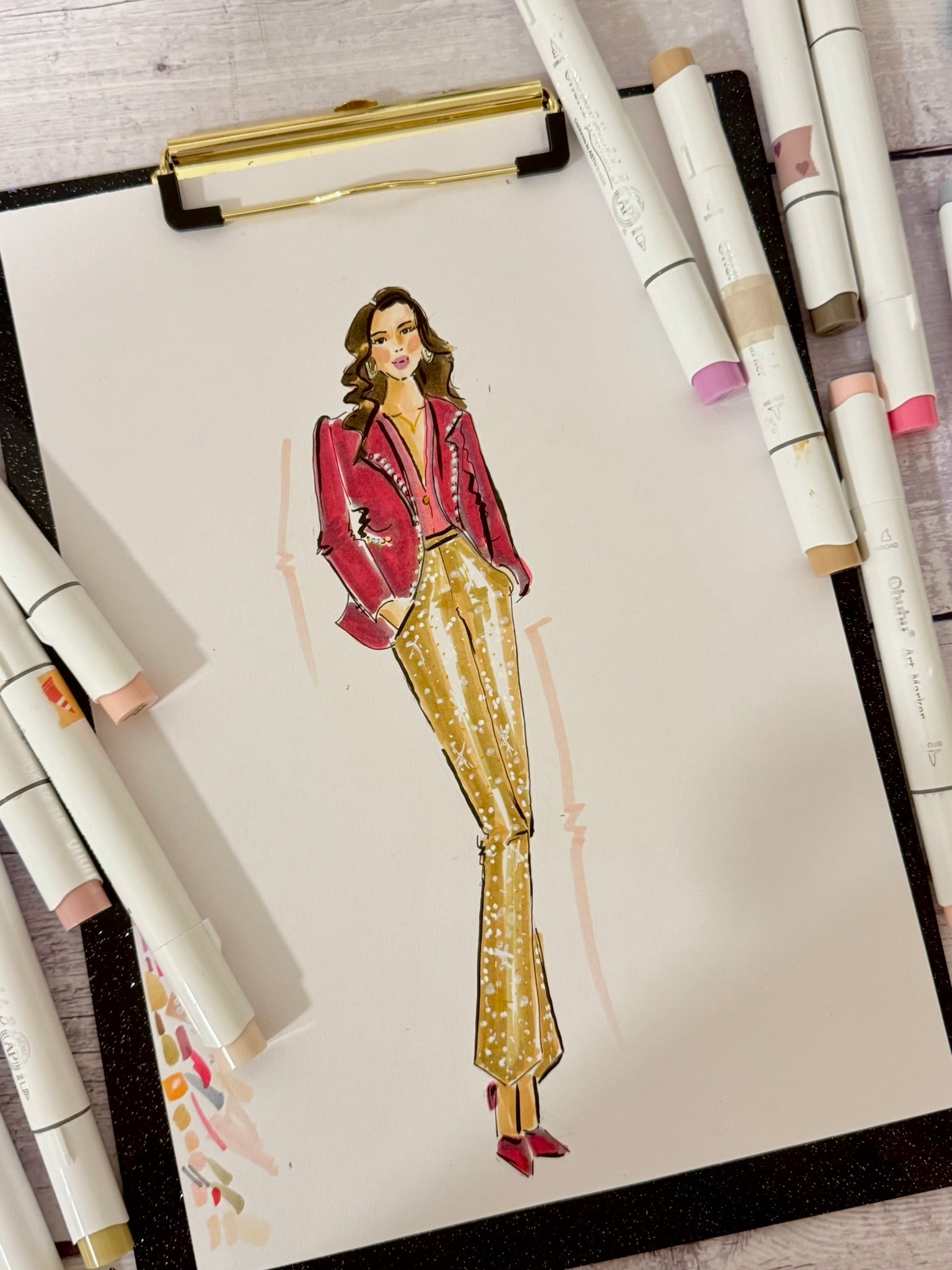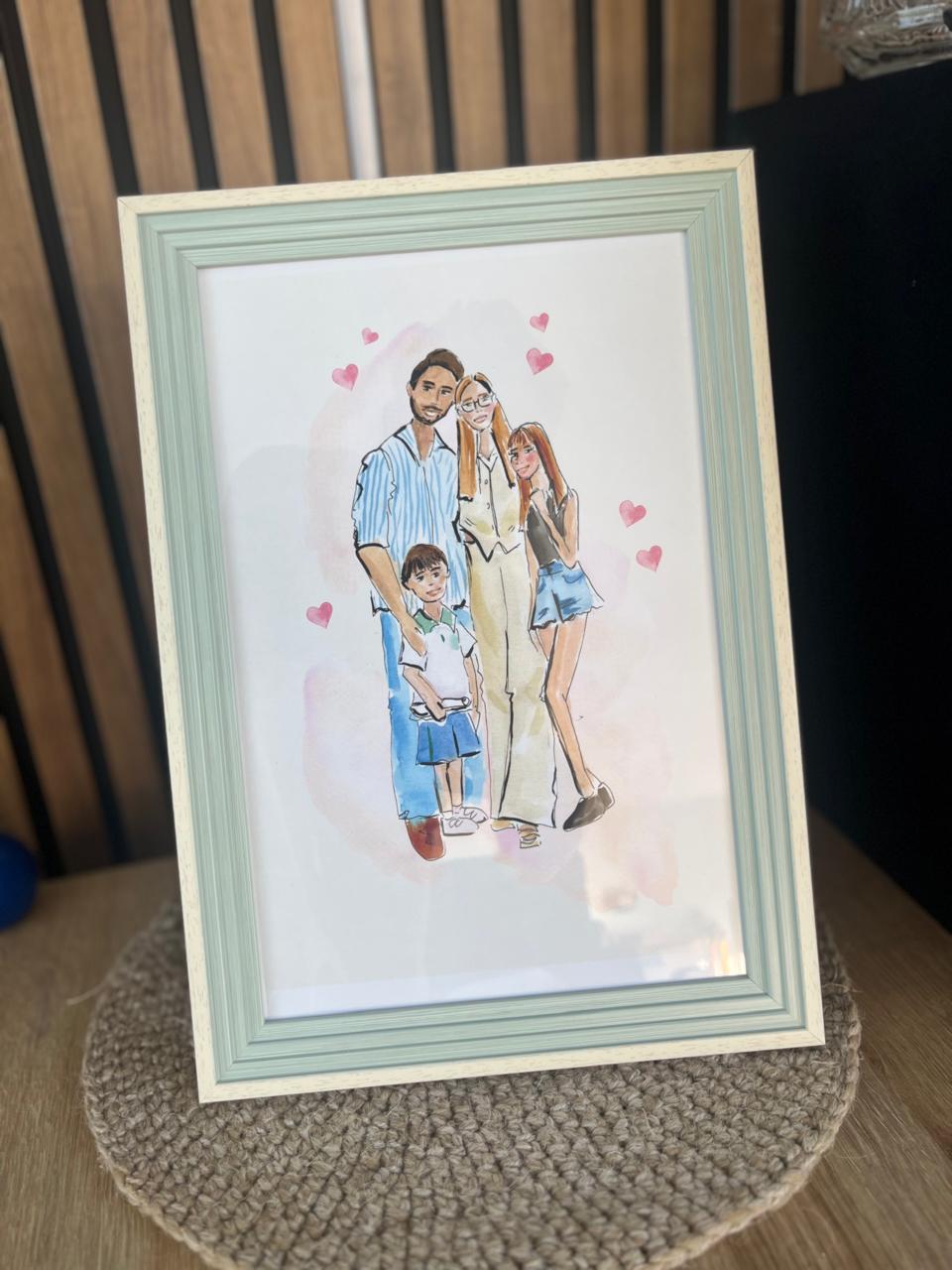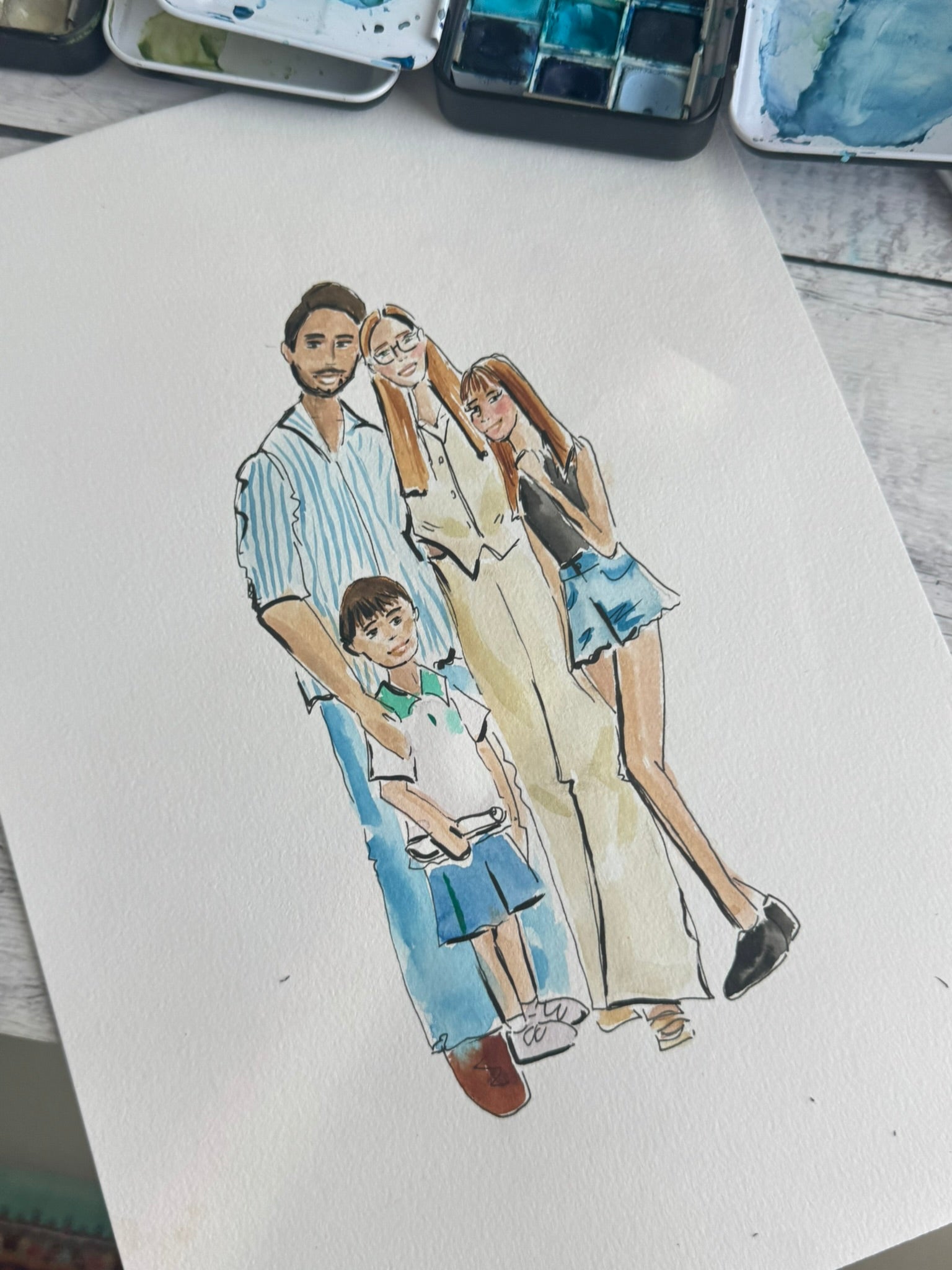 This custom mixed media portrait is created using a combination of watercolor, alcohol markers and digital illustration in Procreate, blending traditional and modern techniques into a soft, expressive and contemporary style.