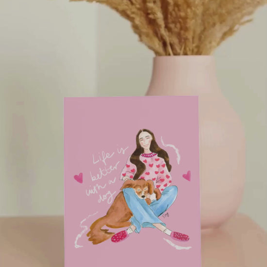 Lady with Dog – Printable Watercolor Art Instant Download | DIY Wall Art & Cards